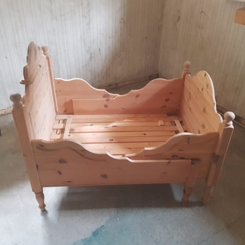 Senger i furu – 2 stk, selges uten madrass