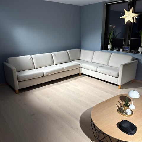 3 seter-hjørne-2 seter. Tekstil Tone lys granitt