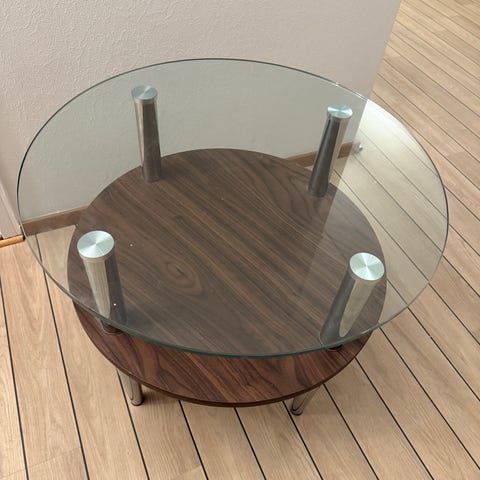 Selger ett lite pent bord , glassplaten sitter ikke fast , bena er 50 cm , glassplaten er 65 cm