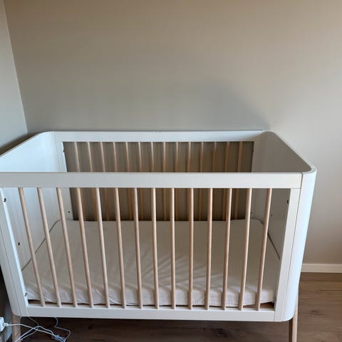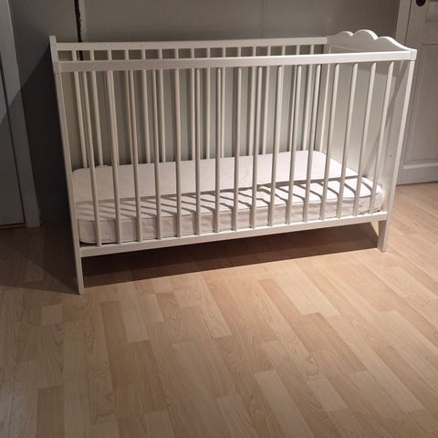 Godnatt sprinkelseng fra IKEA inkludert madrass, madrassbeskytter og sengekantbeskytter. Nypris 6000 for alt, selger for 2000. Noen bruksmerker på ene sengekant, ellers solid og i fin stand. Hentes fra 2.etasje
