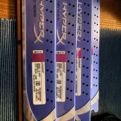 Selger sett med 4x4GB Kingston HyperX DDR3-1600 minnebrikker.