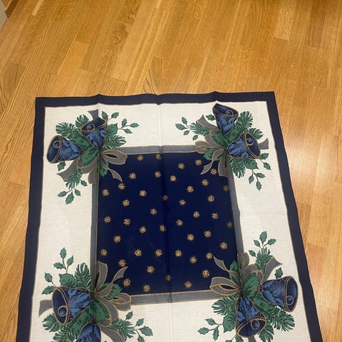 Stor duk med blonde mønster passer til stort bord usikker på str da det ikke står str