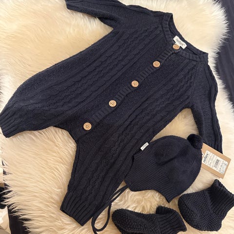 Vinterdress til baby i str 50/56. En myk og varm dress til baby med super lett åpning nede for enkel bleieskift.