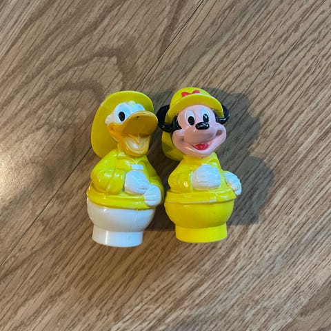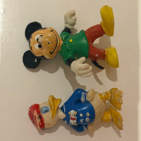 Disney Mikke Mus og Donald Duck og andre figurer, totalt 13 stk. Figurenes materiale er plast. Er nok fra 60- 70 åra