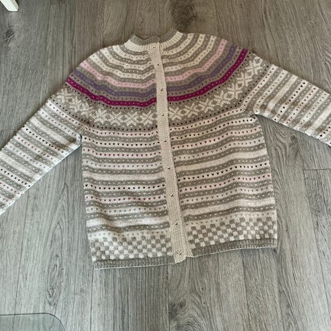 Nydelig original Fanakofte, strikket på 70-tallet. Har vært i familien hele tiden, men stort sett bare oppbevart i skap. Selges pga flytting og dessverre mindre plass. Str ca M. En bitteliten flekk nederst, ikke til sjenanse.