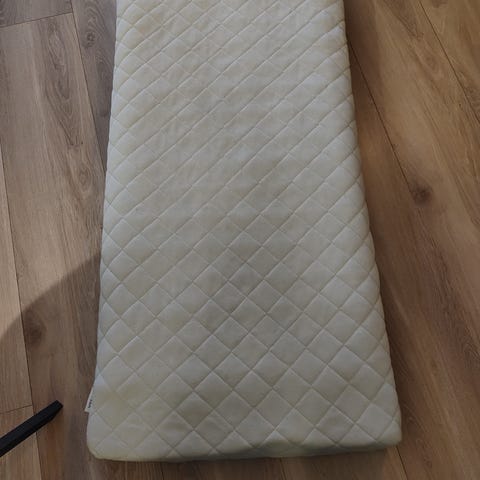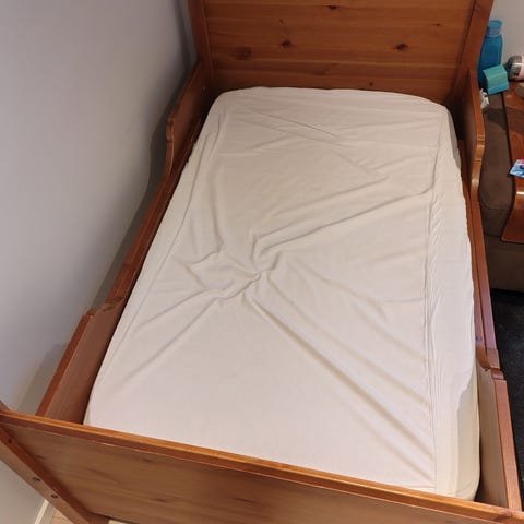 Gir bort en pent brukt småbarnsseng med madrass og overmadrass.
