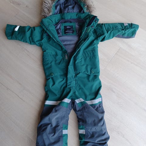 Vinterdress fra Didriksons i størrelse 90. Meget pent brukt av ett barn, fjorårets vintersesong. Intakte strikker under føttene, minimal slitasje på knær etc. og ingen hull. Noen mindre bruksmerker.