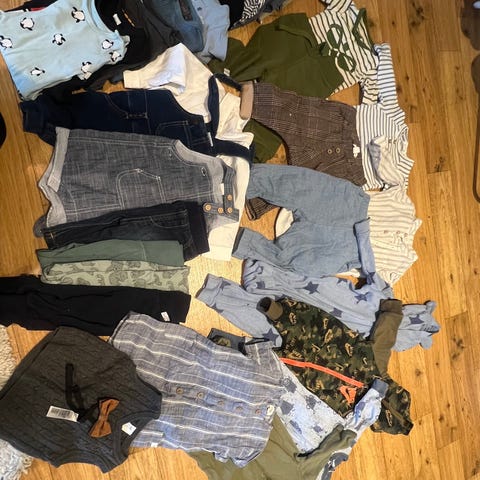 Selger en fin klespakke i str. 62 – alt er pent brukt og fremstår som nytt. Nydelige baseplagg i nøytrale farger.