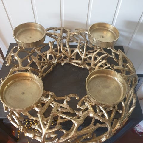 Pen lysestake for kubbelys i svart og gull. Høyde 42cm, Diameter: 18cm