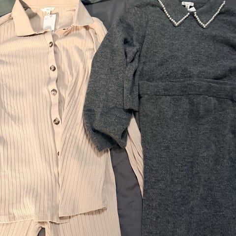 Gravidklær, T-skjorter, langerma, bukser, joggebukser og kjole.