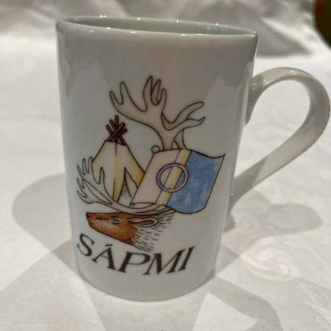 Krus med samiske symboler, fra Gironvarre porselen.