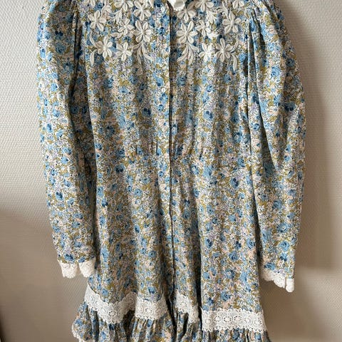 Selger denne nydelige wrapkjolen fra Stine Goya. Knapper i hver side og belte i midjen. Vaffelsøm over skulderpartiet. Store lommer. Selges fordi den dessverre ikke passer meg.