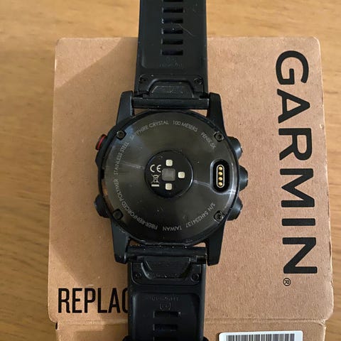 Reim er ganske slitt, men klokka ellers er veldig pen. Helt fri for riper. Med usb-ladekabel og veggstøpsel.