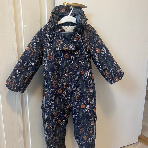 Kjempe fin vinterdress, kjøpt ny av meg. Størrelse 86. Veldig fornøyd med denne modellen siden den er praktisk med to glidelåser for åpning og holder varmen godt. Slitasje på søm på innside, se siste bilde. Røyk og dyrefritt hjem. Sendes eller hentes på Voksenkollen.