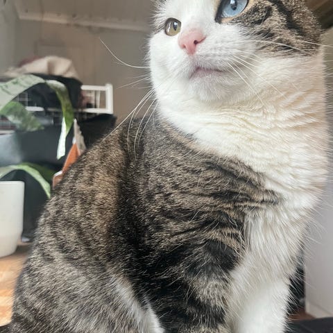 Dette er en voksen dame på 10 år som foretrekker å sove, spise og kose. Å gjerne leke litt om hu gidder.