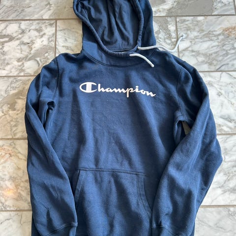 Sort hettegenser fra Champion. Brukt en gang. Snøring i hetta. Lomme foran på magen. Kan sendes, kjøper betaler porto.
