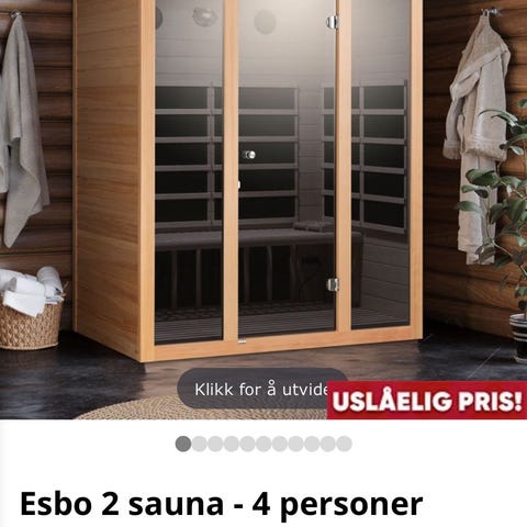 Pent brukt infrarød kvalitetsbadstu, hjørneløsning med plass til inntil 4 personer. Har stått på badet vårt, er nå demontert men elementene er lette å sette opp. Innebygget høytalere og lys. Ypperlig etter en lang tur/skitur!