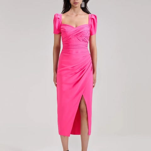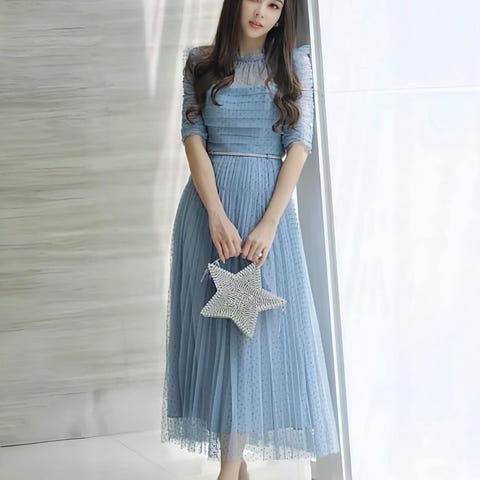 Self-Portrait festkjole i størrelse M, svart farge. Kjolen har lange, gjennomsiktige ermer med rysjedetaljer og en midilengde skjørt. Materialet er lett og gir en elegant passform, egnet for formelle anledninger. Str UK 10 som tilsvarer en 38 i Norge .Kun brukt en gang noen få timer . Påstår som ny .