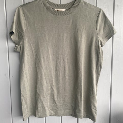 H&M T-skjorte i hvit farge, laget av 100% bomull. T-skjorten er i dame størrelse 40. Materialet gir god komfort og egner seg til hverdagsbruk.