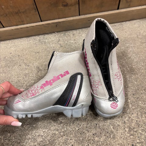 Pent brukte og varme skisko til barn til bruk på langrenn. Pent brukt av 1 barn.