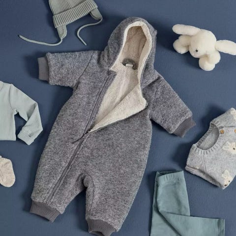 Lindex ull heldress i størrelse 62, grå farge, unisex design. Laget av ullmateriale, egnet for barn. Dressen har hette og glidelås foran for enkel påkledning.