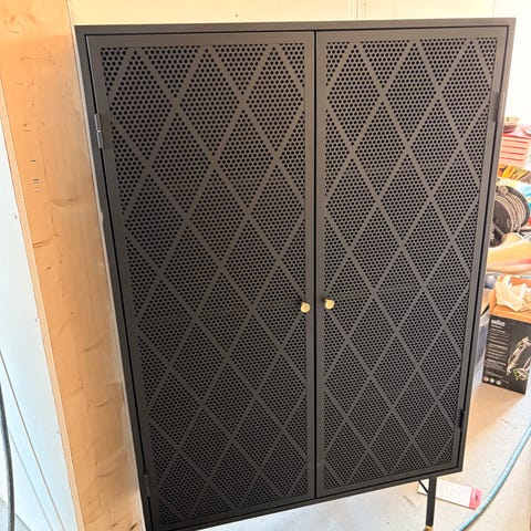 Skap som har blitt brukt som tv-møbel. Det er tatt hull på bakside for kabelføring (se bilde)
