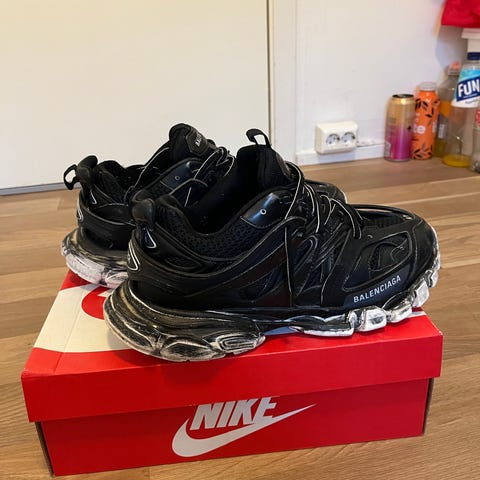 Selger mine strl. 43 Balenciaga Track. Veeeldig god stand, prøvd på foten én gang. Følger med dustbag, ekstra lisser, stockx auth og kvittering. Selger til veldig redusert pris da jeg mistet boks i flytting, er også åpen til bud så lenge de ikke er skamfulle.