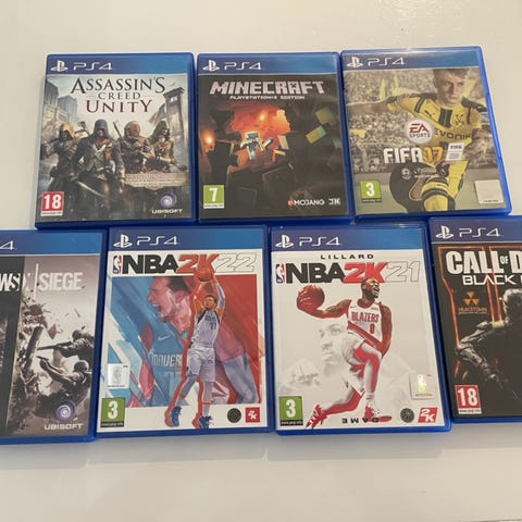 Playstation 4 spillpakke som inkluderer Wolfenstein II, Call of Duty Black Ops III, The Crew og Rainbow Six Siege. Spillene er for Playstation 4-konsoll og dekker flere sjangre som action, skytespill og racing.