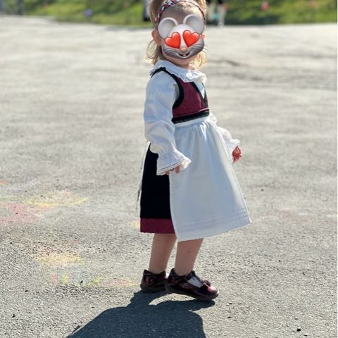 Står 4 år på kappa. Men bunaden ble brukt her til jente fra 4-6 år.