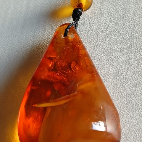 Fin anheng laget av naturlig egg yolk baltisk rav. Landskap rav. Ravet er opprinnelig fra Kaliningrad. Den har ikke lås. Går fritt over hodet. Dimensjoner og vekt vises på bildene. Leveres med gaveeske. Hvis du lurer på noen skriv melding.