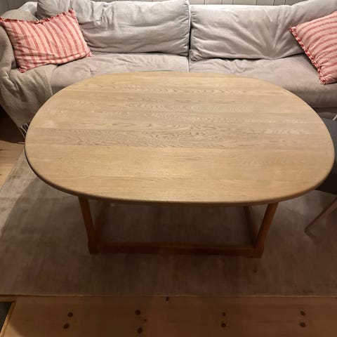 Svært pent brukt sofabord fra HASLEV Møbelsnekkeri i Danmark. Håndlaget i lys eik.