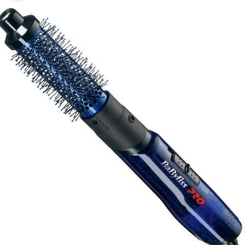 BaByliss rund børstevarmer i blå farge. Elektrisk hårstylingverktøy med børste for å forme og style hår.