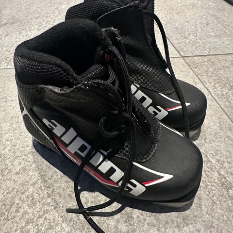 Pent brukte skisko i str. 27 selges for 150kr paret.