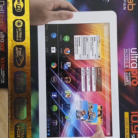 Den bruker android lader som er IKKE inkludert. Bare nettbrettet.