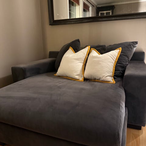 Boston er en myk og deilig dagseng som passer perfekt foran peisen eller TVen. Daybeden har romslige og myke løse ryggputer som gir den en nydelig og avslappende komfort, og den store seteputen har et behagelig skumfyll. Boston daybed leveres i en sjattert og mykt velurtekstil i mørk antrasittgrå. Med det store og brede sete er dette den ultimate daybeden å slappe av i, her er det god plass til flere enn én, når en skal slappe av i stuen.