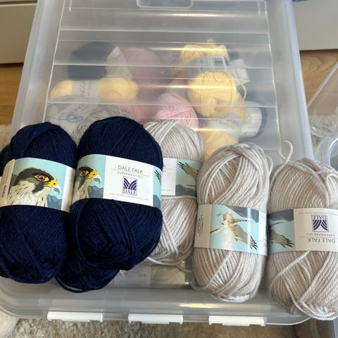 Har noen nøster som er påbegynt / rest som også kan sendes med i tillegg (ca 50gr burgunder + 130gr grå)
