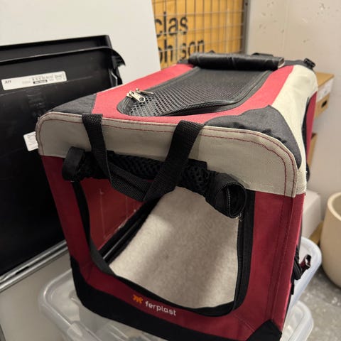 Selve buret er IKEAs Detolf vitrineskap lagt på ryggen. Her har dyret god plass.