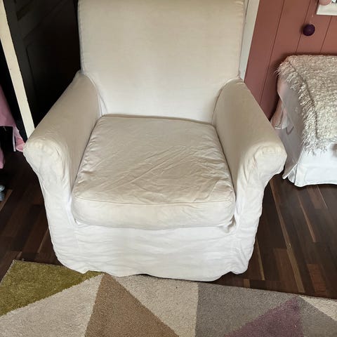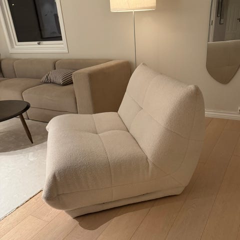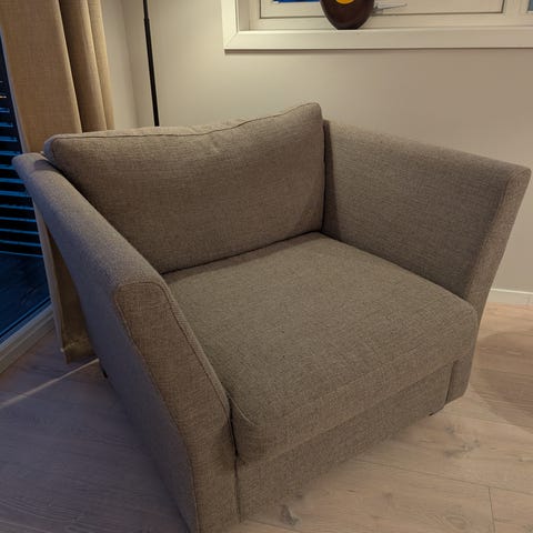 Selger to nydelige stoler i en lys beigefarge fra Home & Cottage som er lite brukt— derfor som nye! De er veldig gode og komfortable å sitte i. Stolene kan snurres rundt.