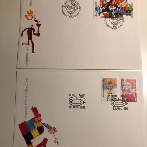 Postens frimerkeprogam 15 konvolutter med OL-stempel. Innbundet med «magebelte». Ikke tatt ut av det.