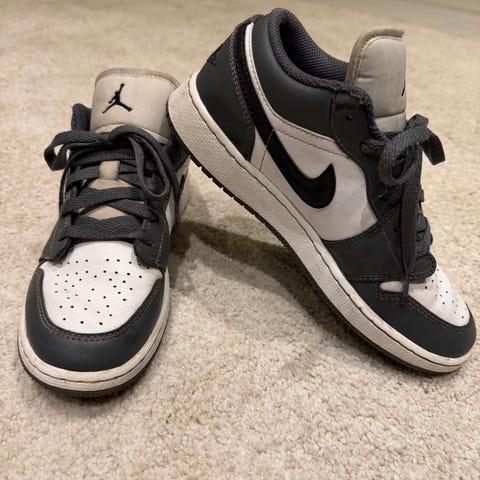 Hvite og sorte air Jordans - slitt og godt brukt str 36 kr 200