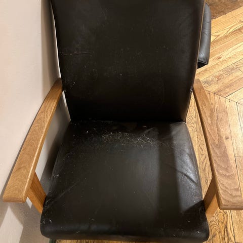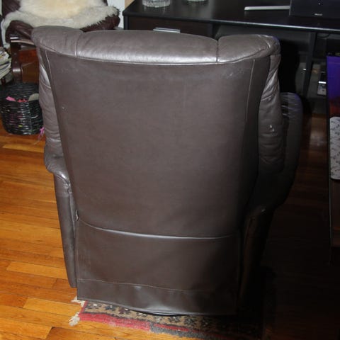 Brukt recliner stol i skinn. Roterer. Gratis mot henting.