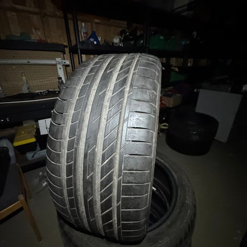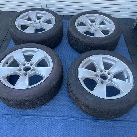 2 Continental piggfrie vinterdekk, 225/45-R17, (94-T-XL). 7 mm mønster. Prisen er for begge to. Billigste nypris pr dekk er 2980, ifølge prisjakt.no.