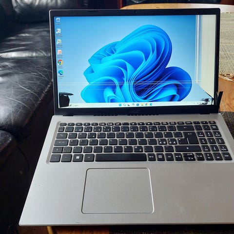 Maskinen har noen riper på lokket, som du kan se på det ene bildet, men utover dette ser maskinen bra ut.