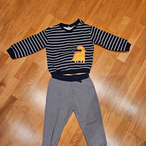 Reflex barneklær for gutt i størrelse 86, laget av polyester. Settet består av jakke og bukse i blå farge, designet for barn med funksjonelle detaljer som justerbare stropper og elastiske mansjetter.