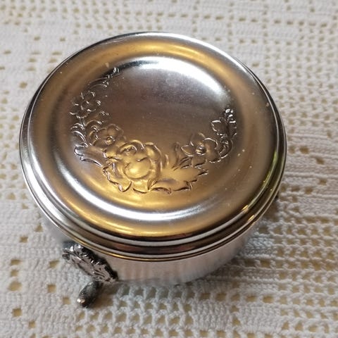 Ovalt smykkeskrin eller pilleboks sølvforgylt