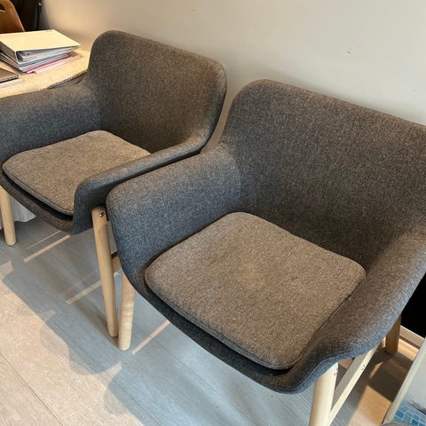 Selger to stk Nub loungestol fra anerkjente Andreu World, designet av Patricia Urquiola. Stolen kommer i svartlakkert bøk med lys grå seteputer, en tidløs kombinasjon som passer inn i både moderne og klassiske interiører.