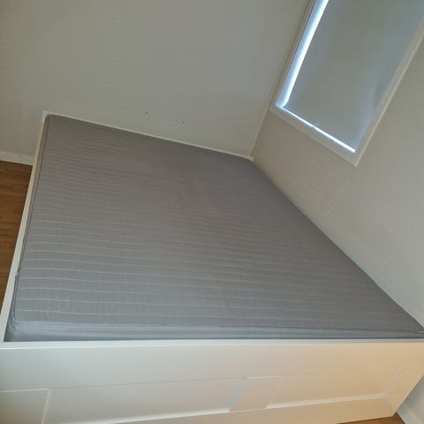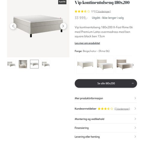 150×200 Wonderland dobblseng med overmadrass og ben til salg.