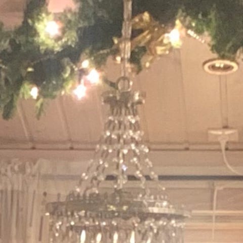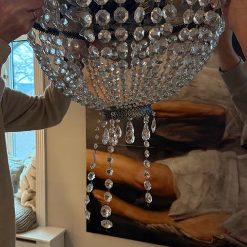 Lekker krystallkrone selges rimelig. H fra takfeste 85cm, omkrets bunn ca 150cm