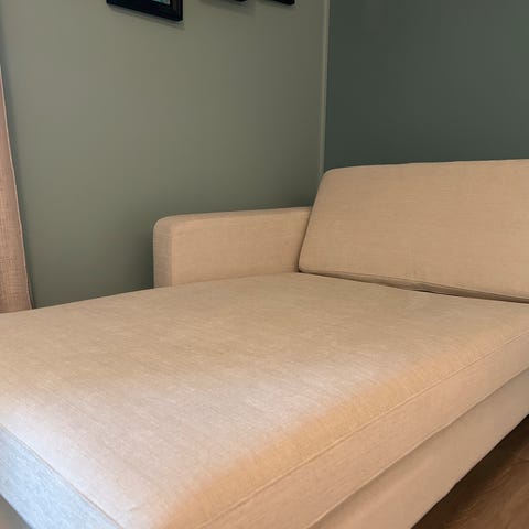 Strøken day bed fra Sofacompany. Mest stått til pynt. Ben i massiv tre (fargen lys eik), selve trekket er i 100 % skinn. Kjøpt ny fra Sofacompany for noen år tilbake for 13 000.