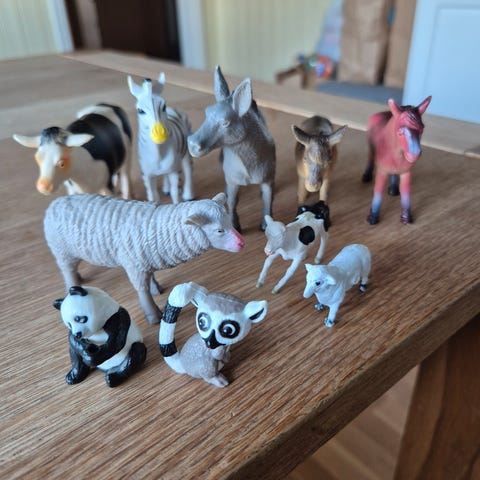 Diverse dyrefigurer i ulike merker, mange er Disney. Selges helst samlet